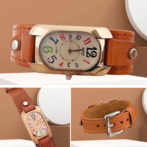 ✅ Destaca con estilo: una combinación de colores única de oro rosa, cuero marrón y números coloridos llama la atención de cualquier multitud.